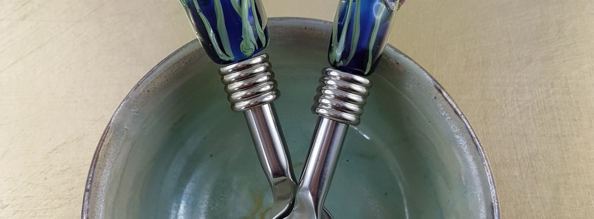 Taufbesteck gewünscht? Löffelchen, Messer oder Gabel aus Edelstahl, beperlt mit wunderbaren Glasgriffen bekommen sie schon ab € 30,- / Stück.
