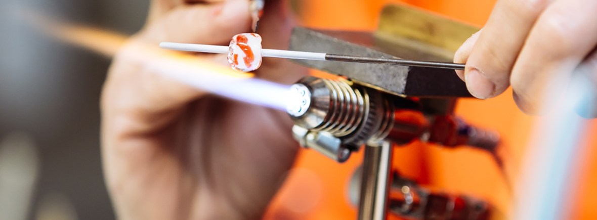Glaskunststücke, Glasperlen und Kurse